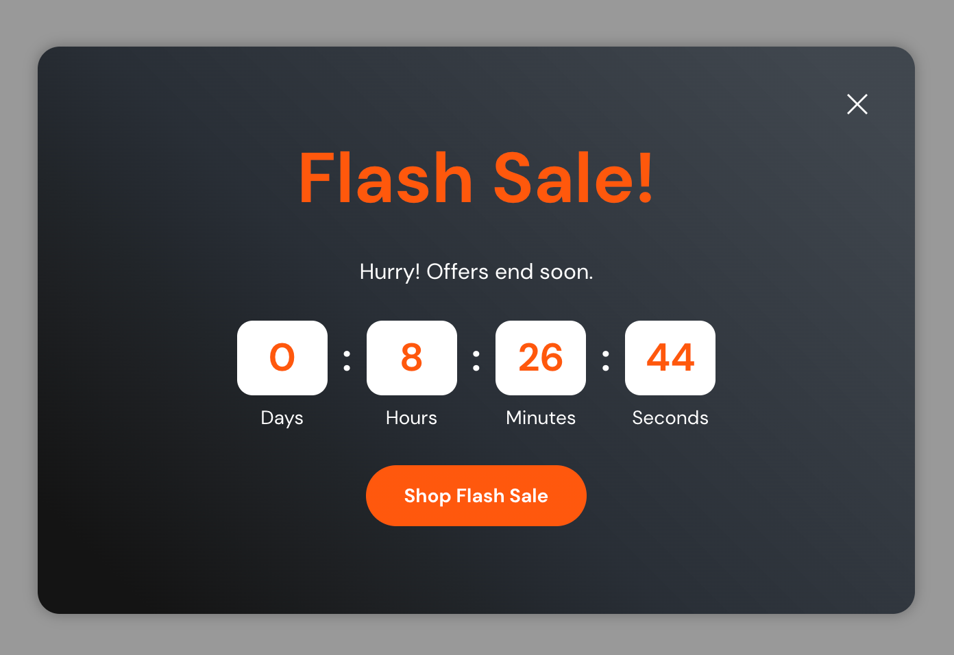 The Countdown timer can be used to create a sense of urgency. Read the Countdown timer section guide for more.