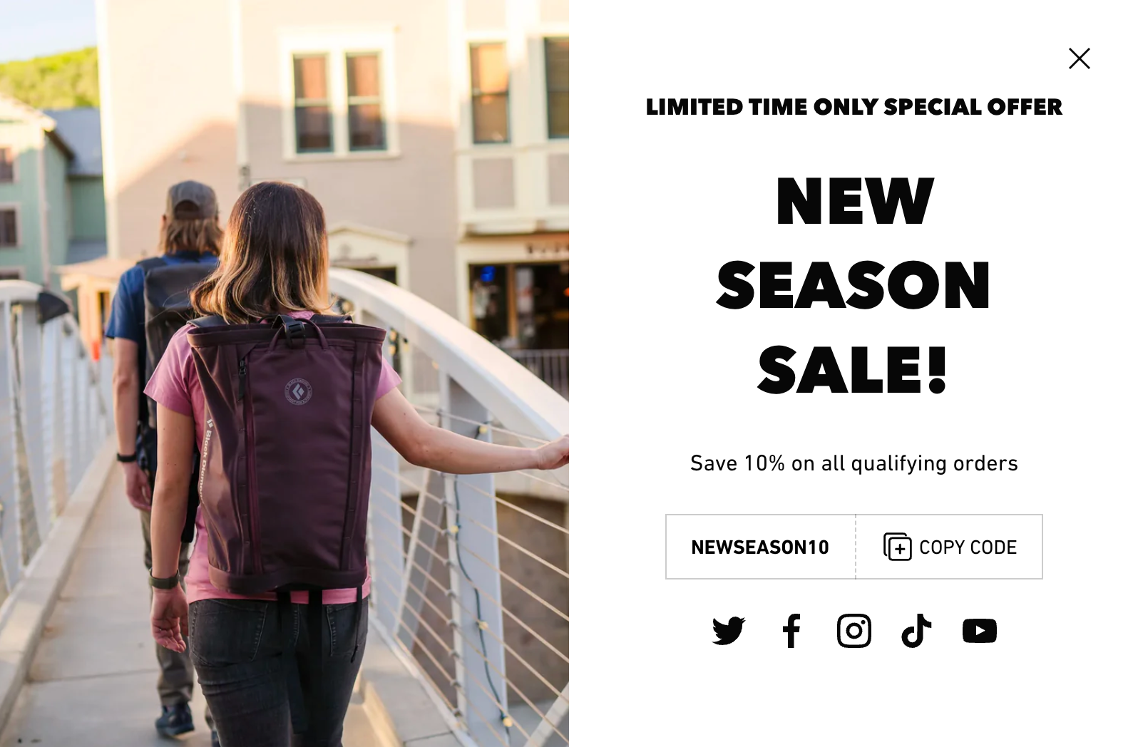 To do this, use the Discount code block. In this example, we’ve chosen to place the image on the left on larger screens.