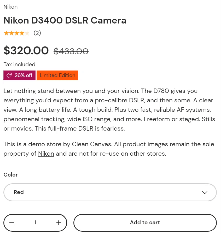 - Go back to the Theme Editor and view the product. Switch between variants to see the different product variant labels.