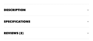 The Tabs style can be set to either Collapsible content (shown above) or Horizontal tabs, and can contain the product description, product reviews, specifications (see below) or up to three custom pages.