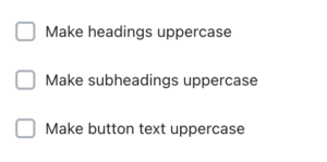 3. Settings are available to make all headings/subheadings/buttons uppercase throughout the store.